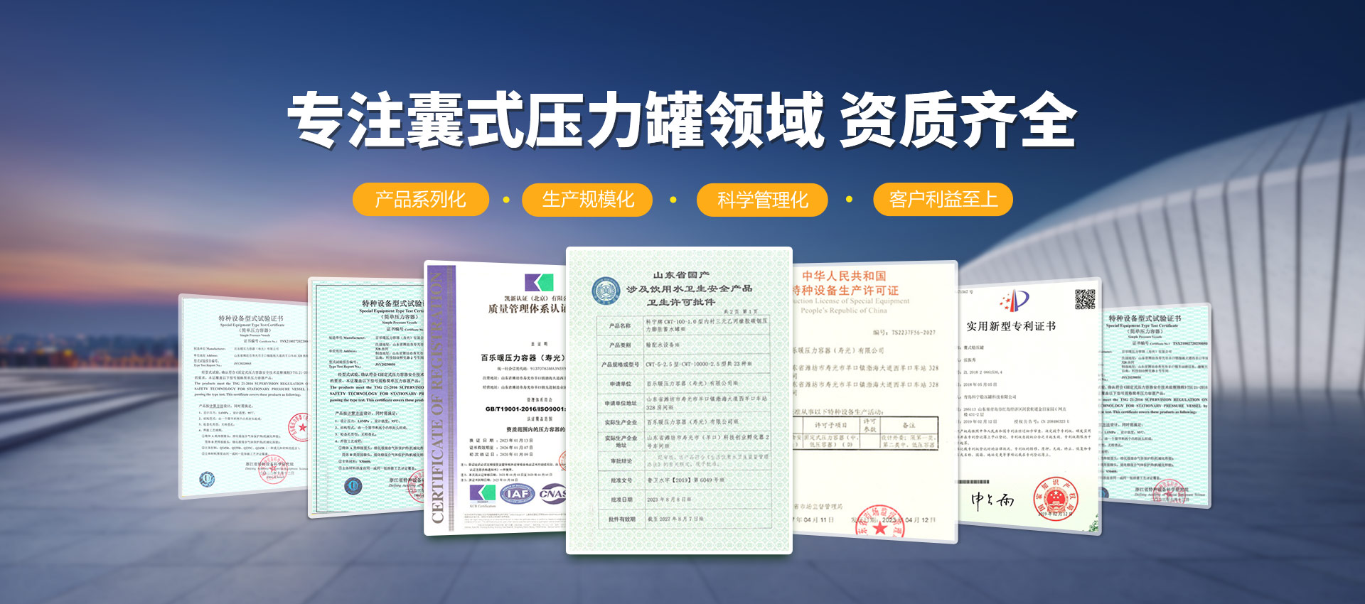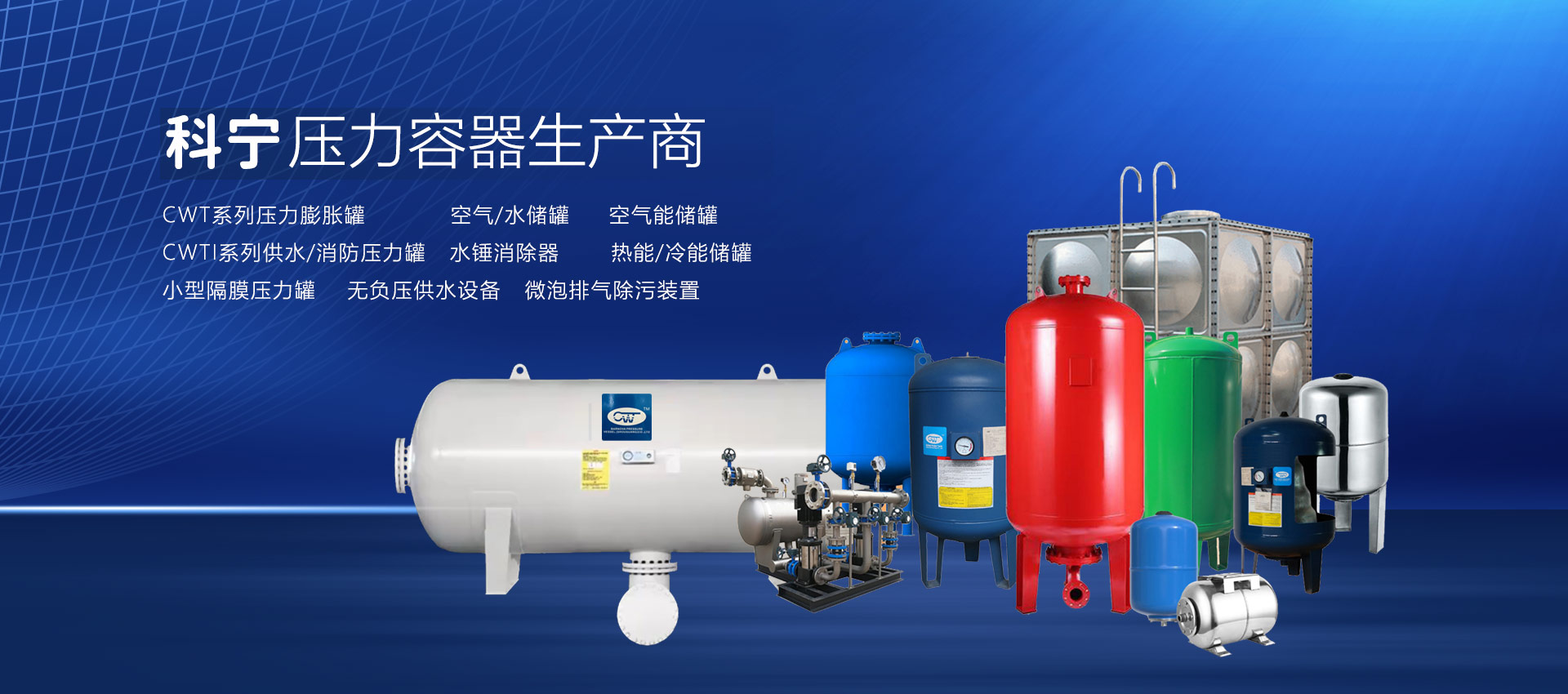 查看詳情 +壽光市科寧壓力容器(壽光)有限公司是專業(yè)從事壓力膨脹罐、空氣/水儲罐、空氣能儲罐、水錘罐、熱能/冷能儲罐、無負(fù)壓供水設(shè)備穩(wěn)流罐、耦合罐的研發(fā)、制造、加工、銷售、維修;經(jīng)營國家允許范圍內(nèi)的貨物與技術(shù)的進(jìn)出口業(yè)務(wù)。材質(zhì)有碳鋼、不銹鋼、雙相鋼等。產(chǎn)品主要用于:恒壓變頻供水設(shè)備、無負(fù)壓供水設(shè)備、供暖系統(tǒng)、太陽能、地暖、消防、空氣能、空調(diào)、大型供水系統(tǒng)(防水錘)。起到節(jié)能、穩(wěn)壓、防水錘、蓄能、環(huán)保等作用,延長水泵和管道系統(tǒng)的使用壽命,確保供水系統(tǒng)穩(wěn)定運行...
